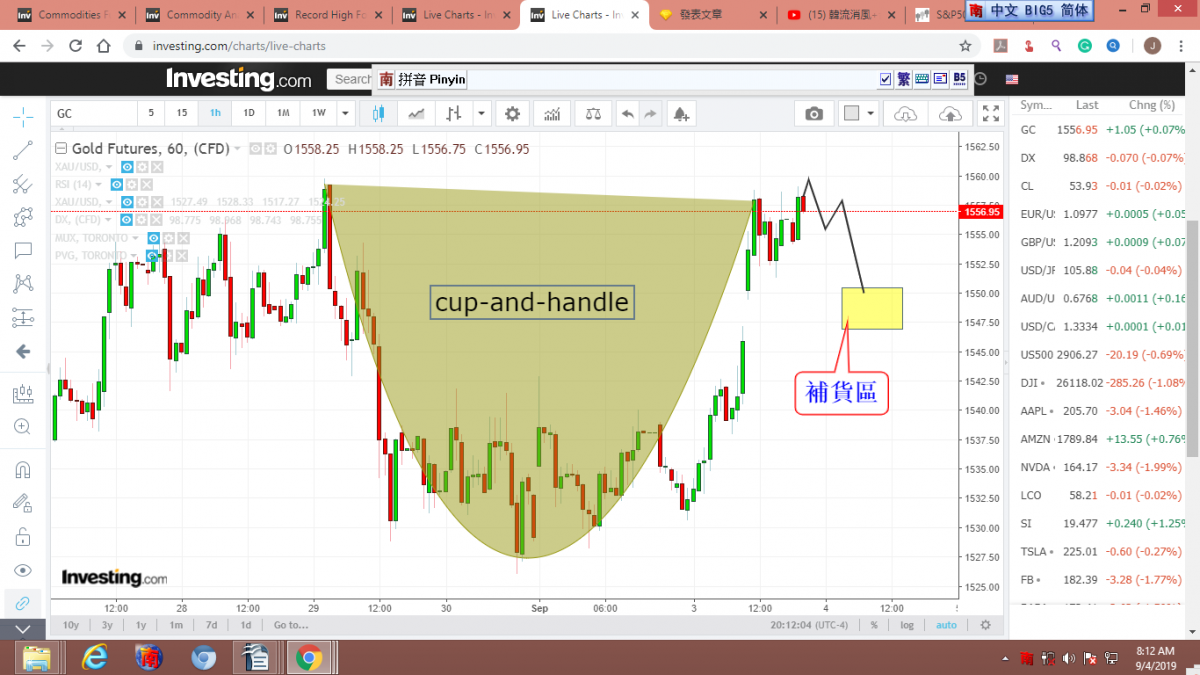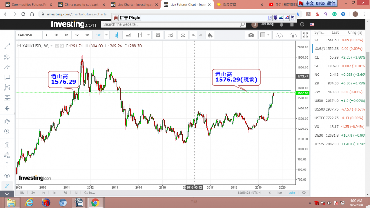 請問是現貨的1562?還是黃金期貨GC201912的數值?