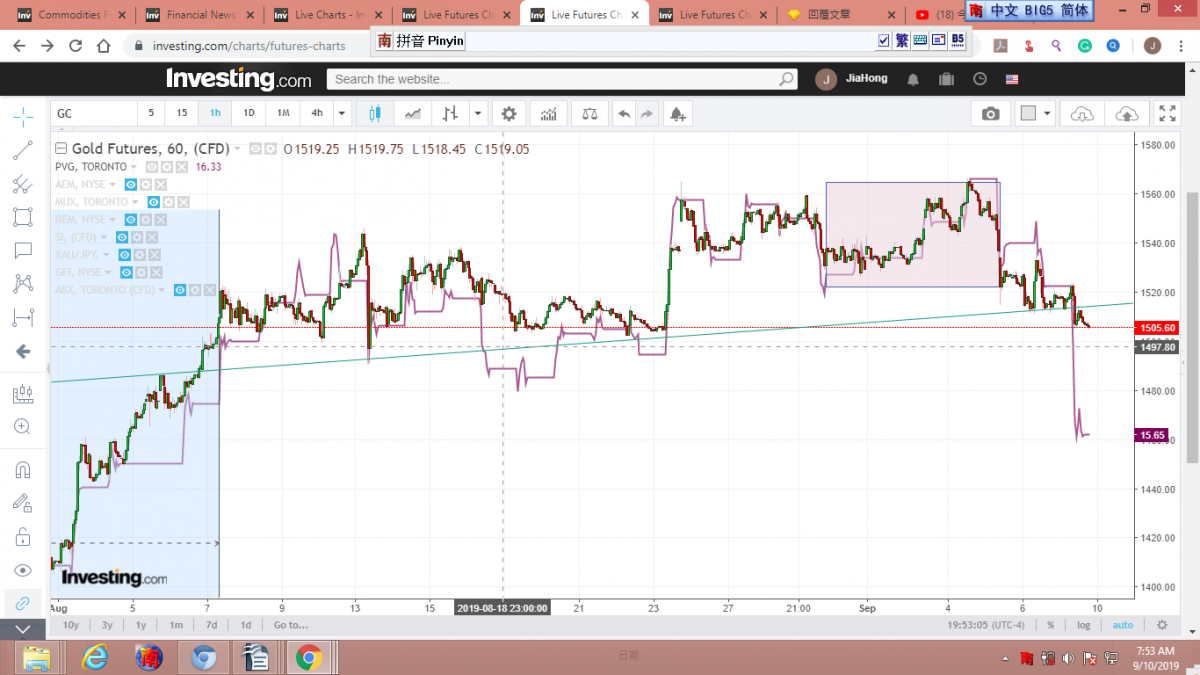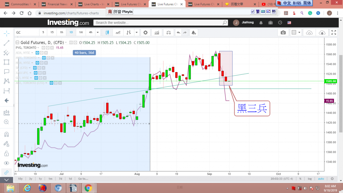 全球降息資金流向勢必趨向基期低風險低的市場,過去數日至今來深圳、上證股市創新高,黃金走跌。