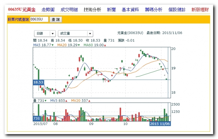 回覆 笨笨:元黃金是什麼?...http://www.chinatimes.com/newspapers/20150414000284-260210看到元黃金ETF,不要誤會是購買元朝 黃金ETF,而是元大寶來標普高盛黃金 ER指數股票型期貨信託基金的簡稱, 不僅是台灣首檔商品期貨ETF,更成為 台灣證券市場第28檔ETF,股票代碼 00635U,將於明(4/15)日掛牌上市。