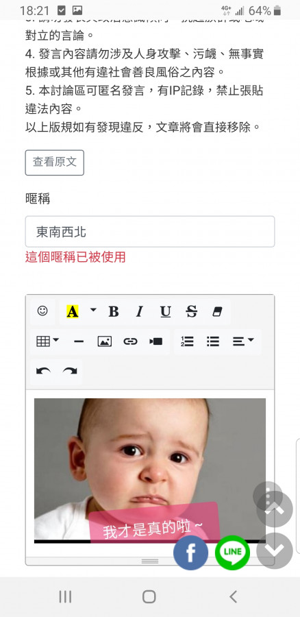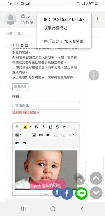 東南西北也確實被註冊了,所以我只能用這個留言了,並且我也尊重註冊的人畢竟我就是個遊客而已,因為是浮動IP以後IP也不會相同,所以: