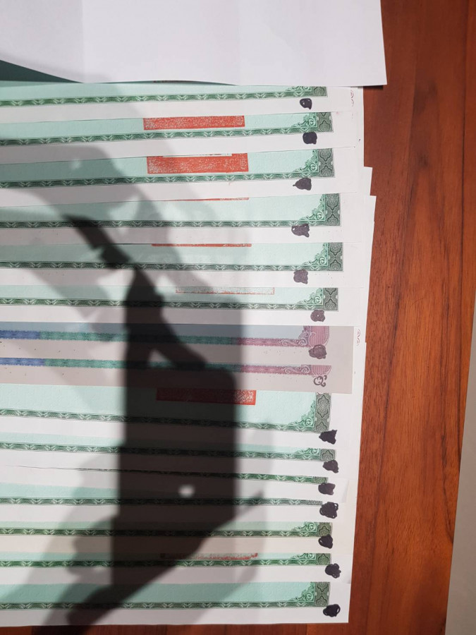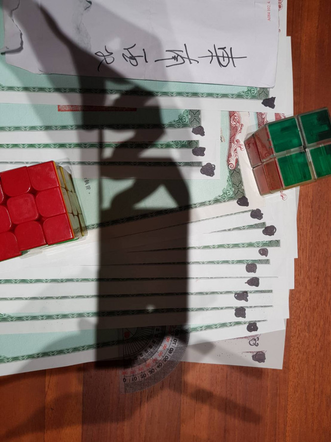 同樣的桌子。同樣的光照。權狀再夾紙。只留第8張豬頭。