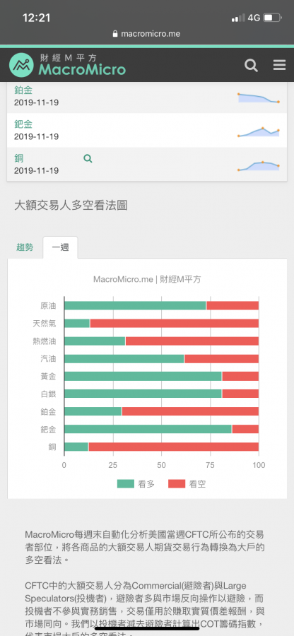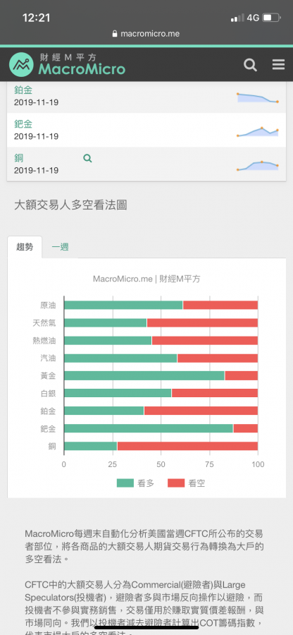 今早已將手中剩餘黃摺持金全數回售(1433/1g)小虧了一筆,個人不看好短期內的金價走勢2020年有不小可能回到1300/1z,美國經濟數據不錯,各國開始暫緩降息,地緣政治也無險情,席維尼對香港應已決定收官,香港局勢應很快會有結果,香港始終是中國的一部分就算國際輿論施壓也不可能改變結果,最後很大機率是中國重搥打擊,激烈反中分子盡數被捕關押收場,美中貿易不可能因香港問題破裂,川習各因政治考量必須達成協議,所以第一階段在2019年底前談攏的機會很大......所以個人覺得至少在2020年底前金價很難再回1500,所以先出場等金價如能回到1350以下才會再入場。