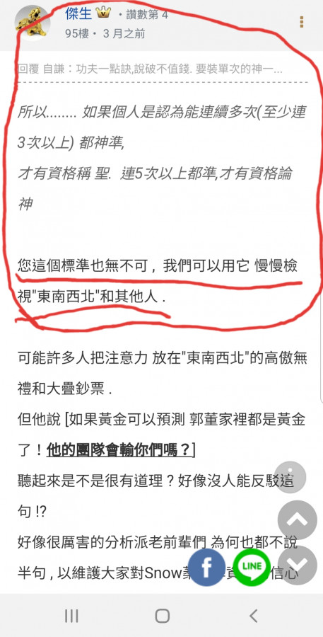但我拜讀東南西北先生的4次預測,除了第二次時間點有延遲(但瑕不掩瑜~我只能這樣形容)。漲跌數字竟然精準到幾美元落差!這是很難想像的!因為這不容易也無道理可尋!但白紙黑字又豈能不信服呢?我想這連國家級操盤手都望塵莫及吧!(本人正是此相關單位退休)!有生之年我能有此巧遇!打破我數十年來對黃金金融的認知!我實話一句!我拜服!或許真是一山還有一山高吧~(轉貼本文)如同我的心聲!