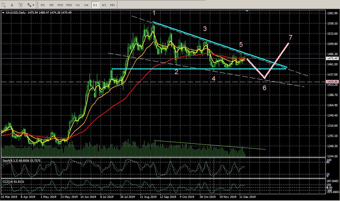 黃金,10月/11月高檔盤旋,12月 KD 值交叉向下,從10月份以來黃金的漲跌有一定步調,大概都是一週漲一週跌,漲幅與跌幅也都在一定的區間150,如果以10月 KD 值要跌到60-50附近,那麼從價上看來有人說會跌到1300/1200/1000以下也是有可能的,但是這是單從技術上看,……這樣蠻可觀的也挺嚇人的,不過技術指標是控盤者與時事面造作出來的,所以從黃金的波動漲跌幅看來價大概以150左右的律動,配合週漲週跌的方式使月 KD 值落至60-50值附近即可,大至算計2-3個月週漲週跌150區間盤整。