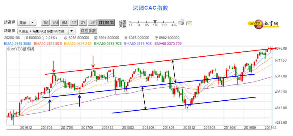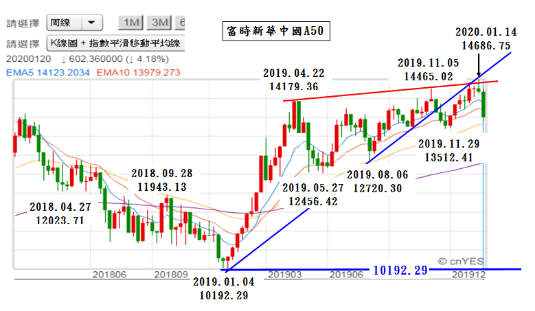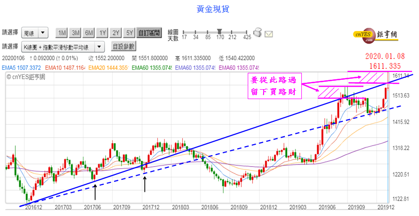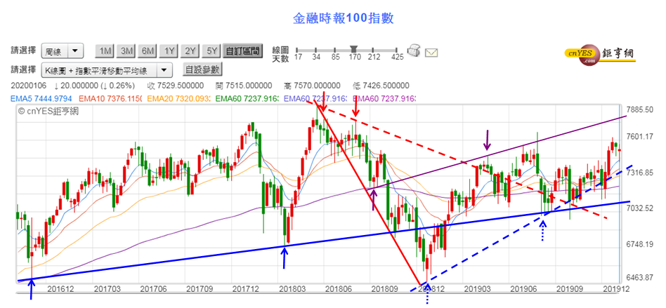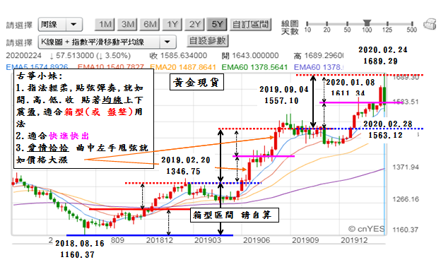 1. 將 黃金週 K 線走勢圖印出來 ,然後依下圖位置將標線畫出來