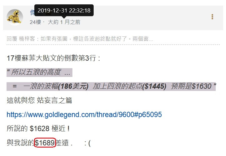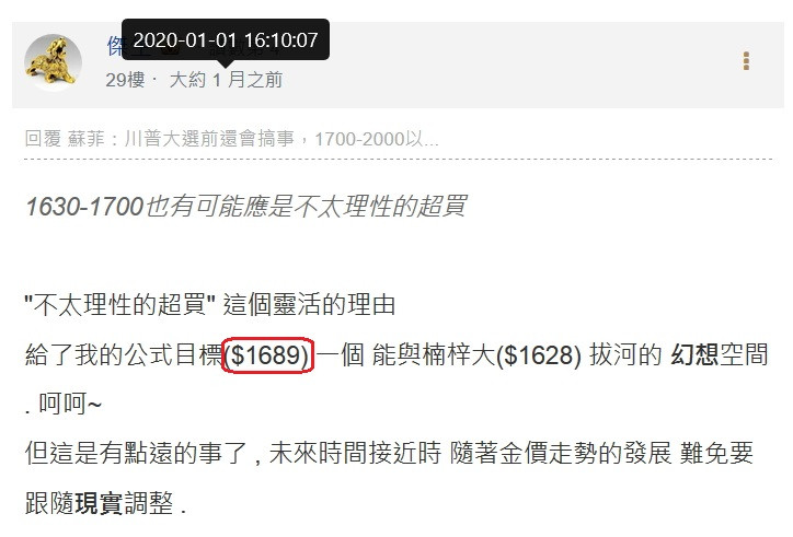 回覆 楠梓客: 從趨勢線看金價走勢 我看金價,靠的...