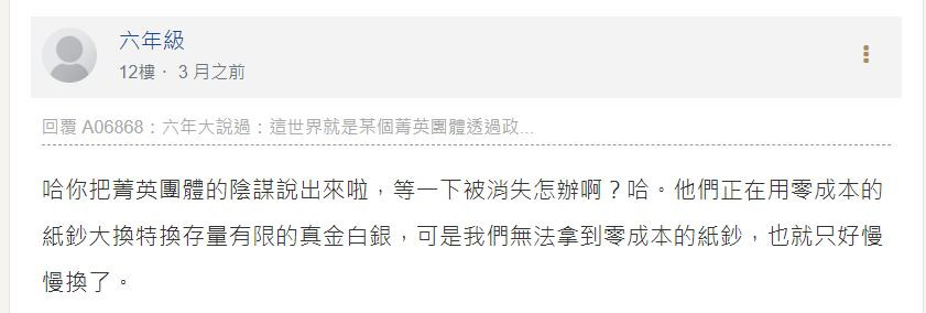 回覆 六年級:哈你把菁英團體的陰謀說出來啦,等一下被消...