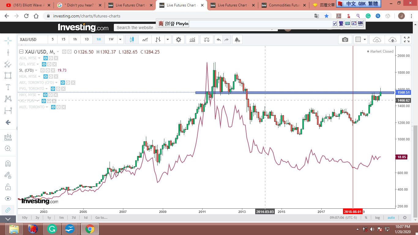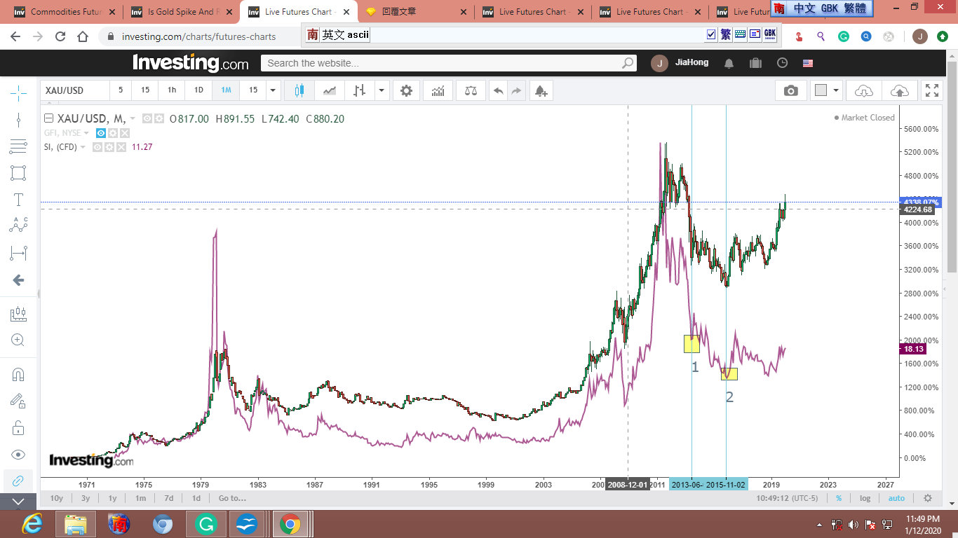 <二> 我所說的 黃金<<2000以上/2020>>,是在這兩條月均線 ( 120 / 60 ) 還沒交叉時就能先看見 2000以上,這是必須說明清楚。