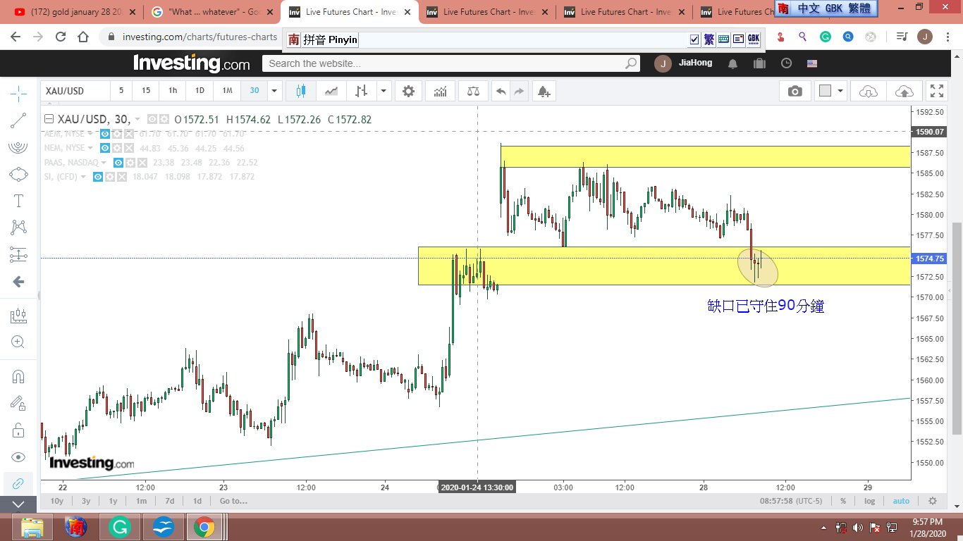 圖中有一處S,兩處R。第一個R,金子僅放慢腳步,然後穿過如入無人之境。第二個R是昨天和今天,金子的確受阻。
