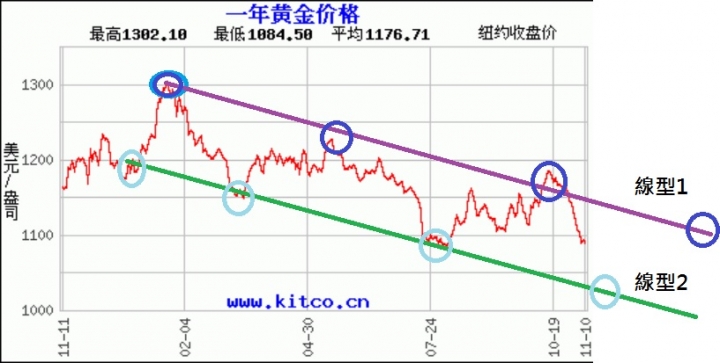 中長線投資者可觀察他未來的走勢有沒有突破線型1或跌破線型2...