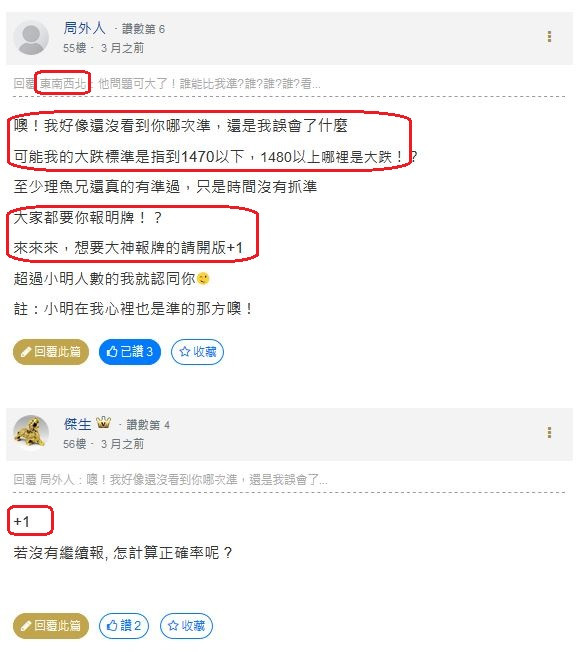 權狀多得看坪數大小吧?房數多得看地點在哪吧?車數多得看廠牌新舊吧?貸款或付現付清呢?人比人氣死人啦~想吹噓、炫耀、當神、造神、捧神、打神、真心分享研析經驗、或另有意圖,都屬個人自由也無意批判,但相互尊重並注意語氣措辭是基本素養,做不到就別上公眾、公開平台。大家應該都是自己出錢投資交易且盈虧自負吧?所以絕無誰幫誰賺錢或賠錢這回事吧?也請那位啥商品標題都要蹭都不斷發文說自己何時交易什麼、買多少價賣什麼價又賺多少的網友適可而止別再形同洗版影響別人參閱權益了(一直標榜自己只賺不賠很厲害無妨、但與別人何干呢?)~跟路邊賣的大家樂明牌一樣、沒中的一定會說騙人而中的卻堅信神準,但四十幾個號碼總有人會中啊只能怪自己運氣不好吧?大家爭論觀點無妨但請別再爭吵了.....發點牢騷請大家海涵喔!