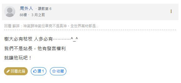 菜籃姐 蘇菲 和我(110樓) 才是挺身為局外人說話的人啊 !