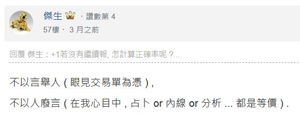另一個以前的案例 : 分身("金幣人") 稱讚本尊("黃金理魚") 神準 ! 希望能被特別關照 .
