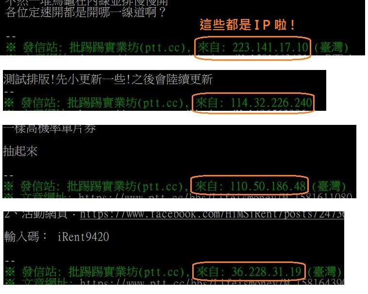其他一些論壇 也是有顯示發文者IP的 . (舉例最有名的ptt論壇吧)