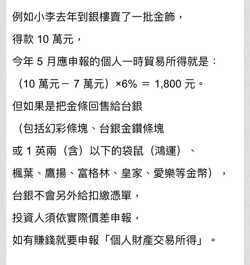 想請問我3年多前在台銀買了20個金鑽條塊.本身也有台銀的戶頭.想趁這波把20個全部回售給台銀獲利了結.回售的金額直接入帳到我台銀的戶頭.這樣金額就超過了50萬.我是回售直接入我台銀的戶頭.這樣有算大額通貨交易嗎.回售的錢雖然超過了50萬.可是是直接入我台銀的戶頭.這樣銀行會通報嗎?