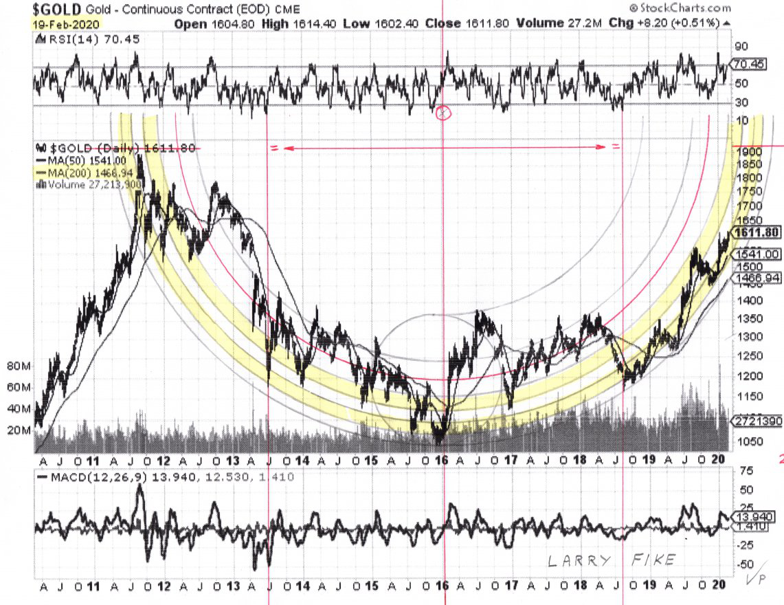 近期黃金步步為營,步伐不徐不疾,但表現不俗。黃金進展費時,因為2011-2013年頂部區的阻力巨大,需要花時間克服。在到達2011年高點的1850美元區域之前,這謹慎步調不會改變。但是,如上所述,在拉里的圖表上,現在大碗右沿幾乎垂直上升,這意味著黃金可能會急速攀升至新高。