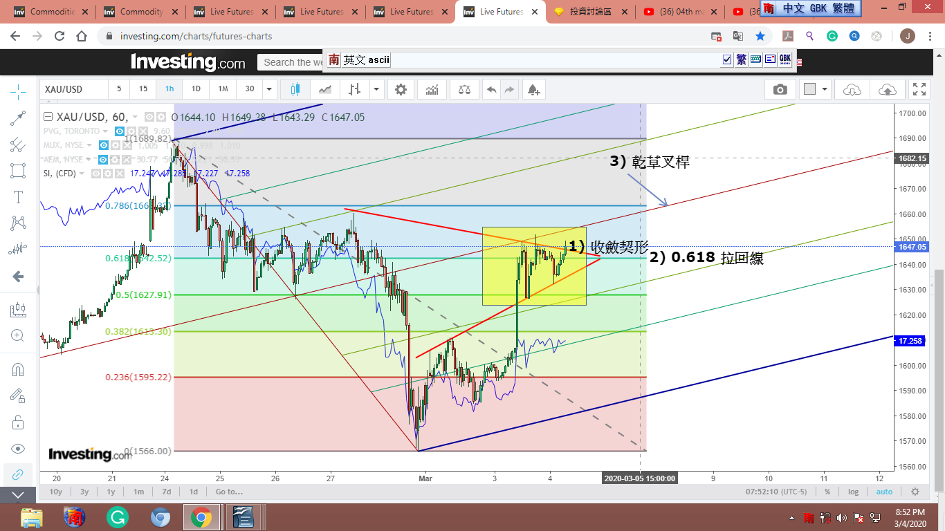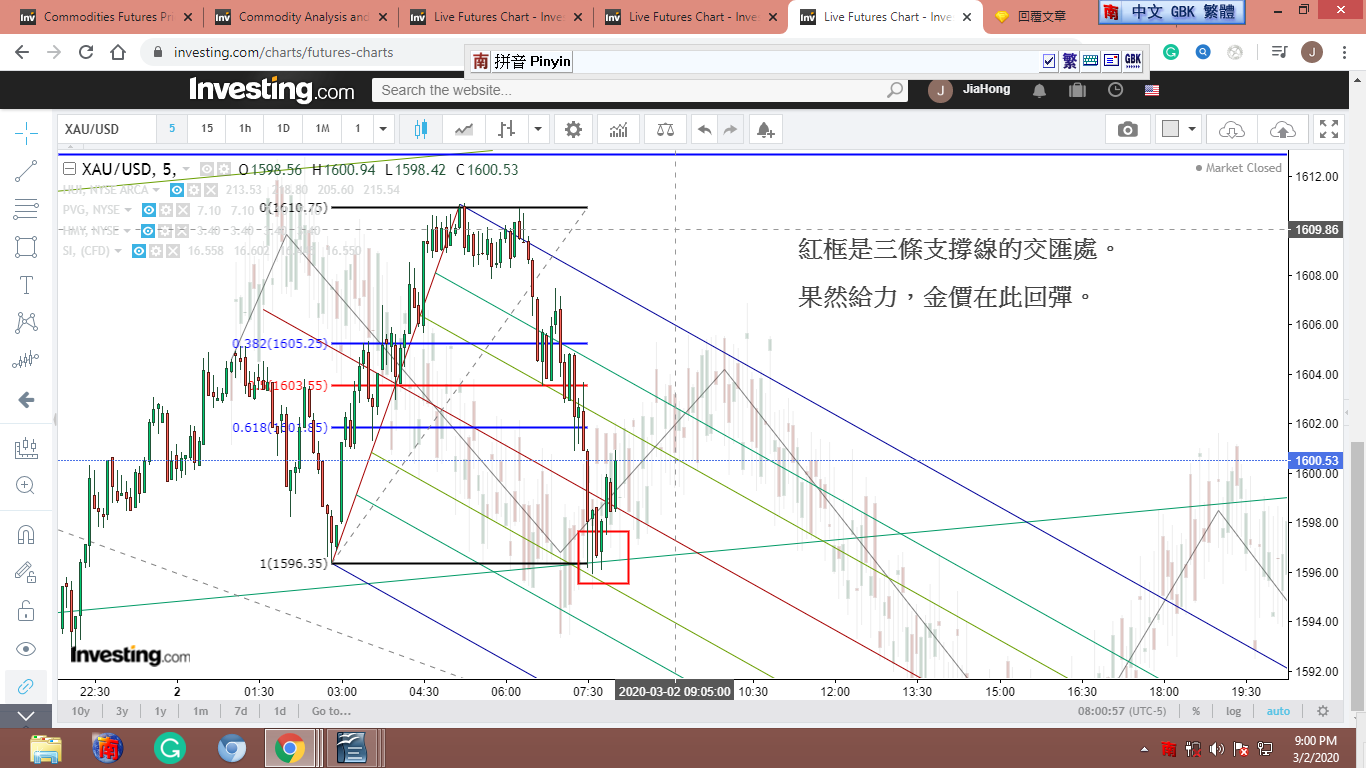 回覆 楠梓客:紅框是三條支撐線的交匯處。果然給力,金價...