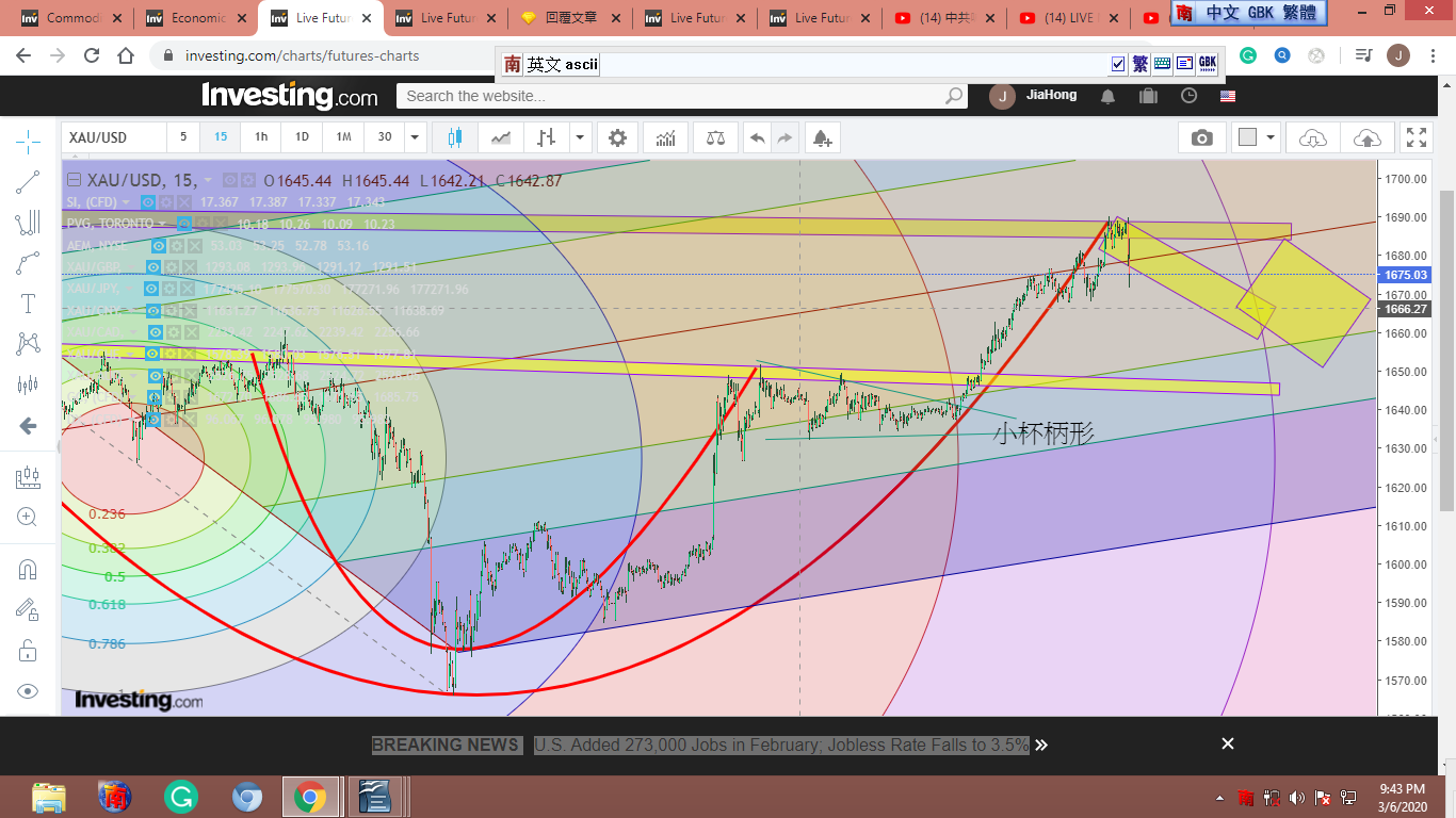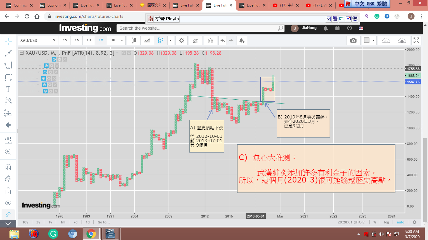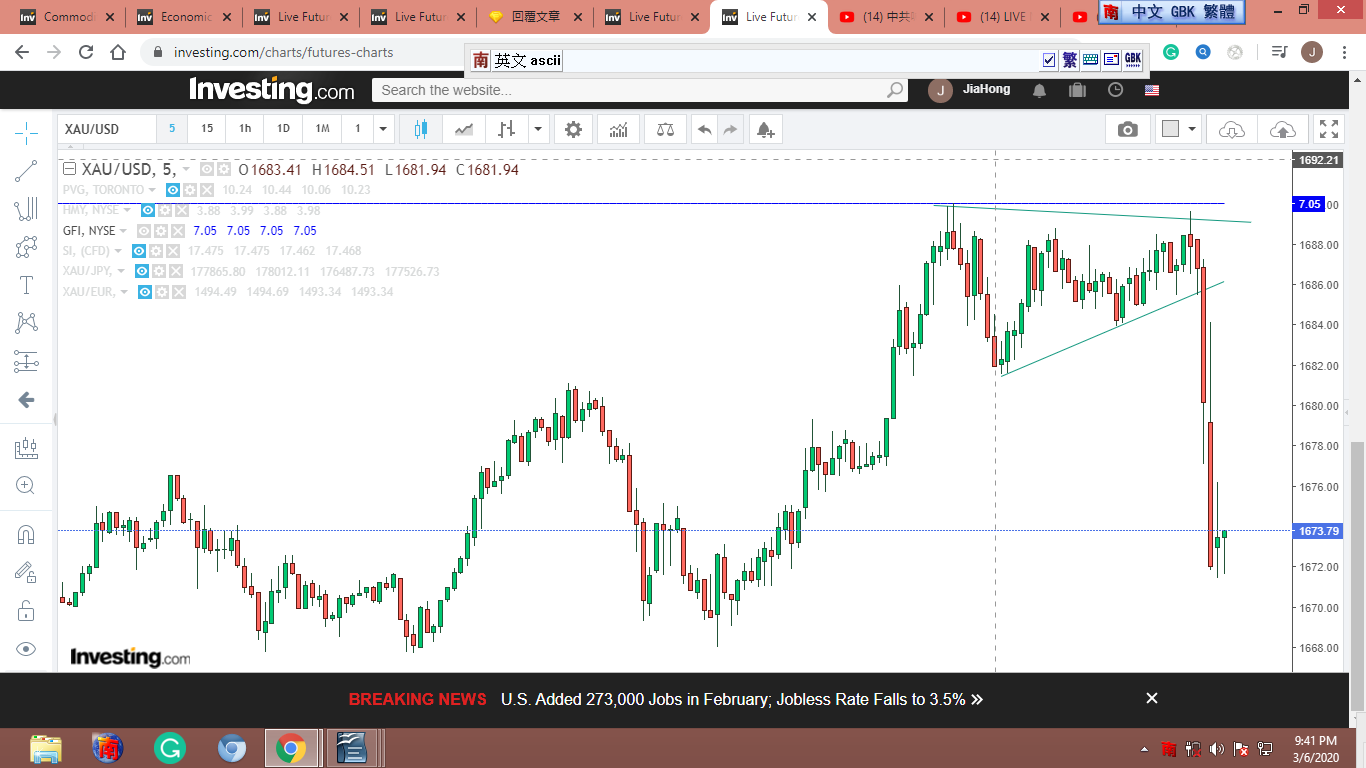 肺炎疫情拖累股市重挫、美國聯準會(Fed)緊急大幅降息2碼,導致美國公債殖利率與美元指數走跌等因素帶動,傳統避險資產-紐約黃金現貨價6日漲至每英兩1,673.83美元,上周漲幅累計達5.55%,是2016年2月以來單周最大。4月交割的黃金期貨合約也漲至每英兩1,675美元。